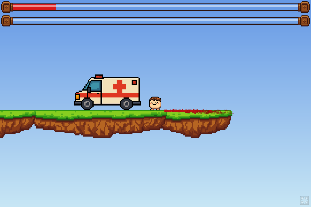 Click and hold to spray blood and propulse yourself. Find the ambulance to get to safety.